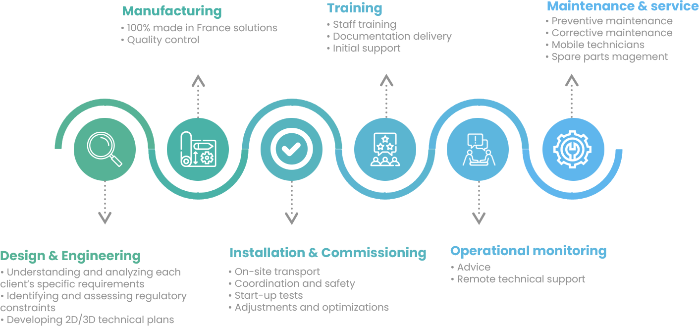 Our equipment is designed and made in France, in our workshop located in the South East of France, close to Avignon. This choice ensures quality, proximity, and responsiveness in all our projects.